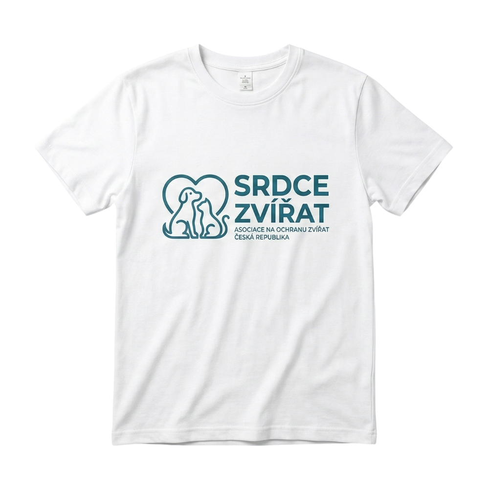 Tričko nabízené organizací Srdce Zvířat je podpůrný produkt určený k financování jejích aktivit.